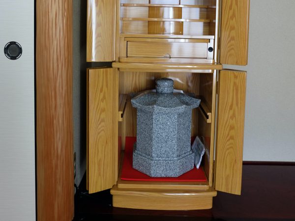 自宅墓を仏壇といっしょに自宅の中に設置できるので場所をとらず、とても満足しています。