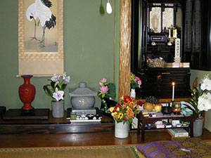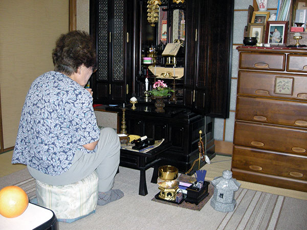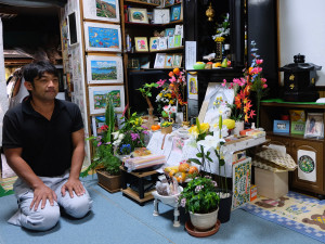 妻に先立たれて寂しいもんです。将来は私といっしょに故郷の万里、沖縄のお墓にいれてもらう予定です。今は私のそばで供養します。