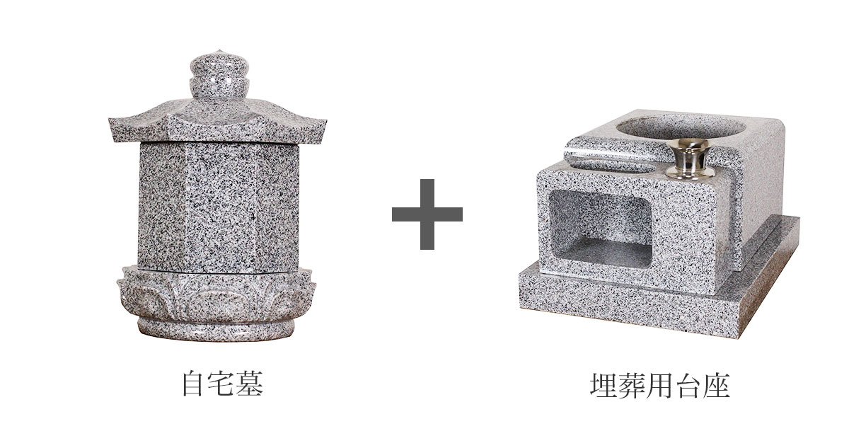 自宅墓を埋葬用台座に置くことで「埋葬墓(まいそうはか)」になります。埋葬墓は、墓地に設置するお墓として、自宅墓をそのままご活用いただけます。