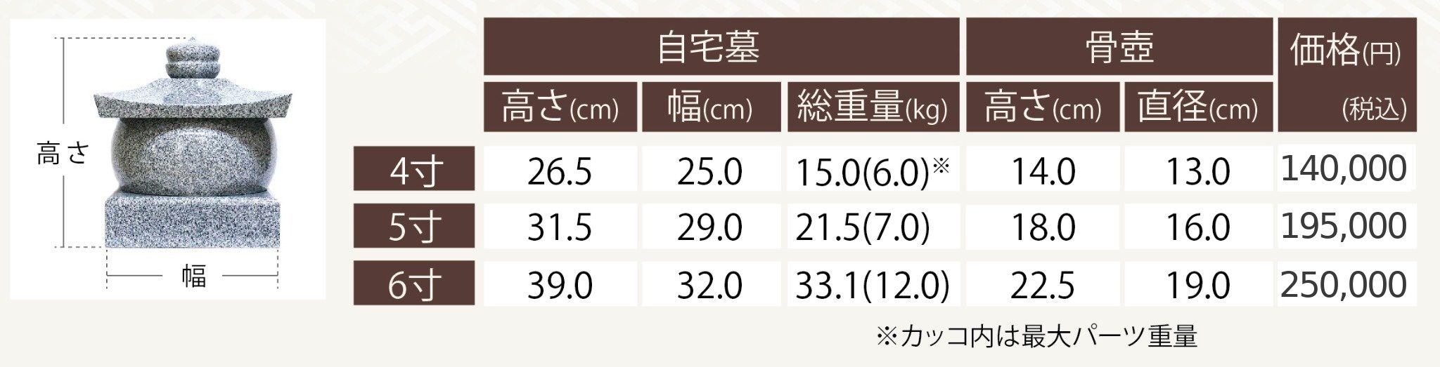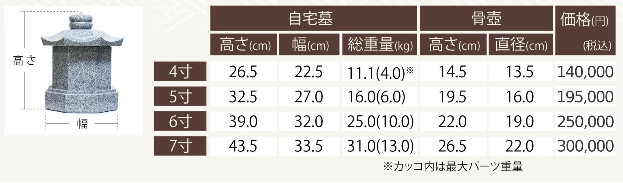 自宅墓は1名分の大きさです。ですが、故人の遺骨を少量ずつ別の袋にいれていただけると数名分の遺骨を納めることは可能です。