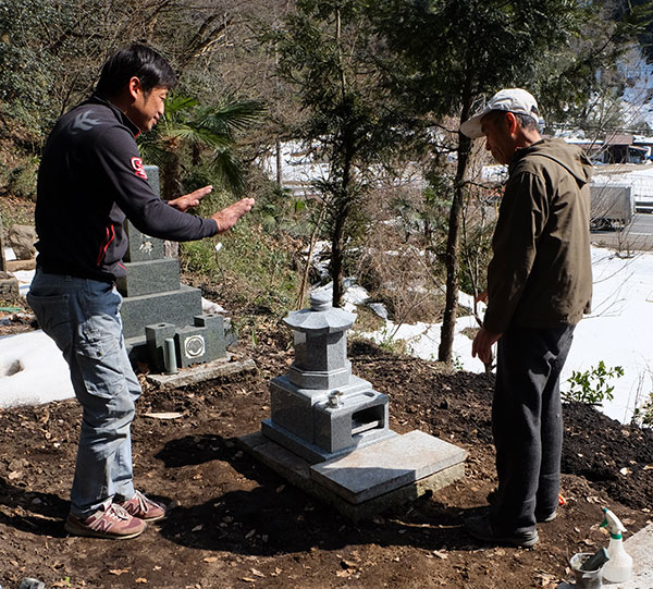 自宅墓を埋葬用台座に置くことで「埋葬墓(まいそうはか)」になります。埋葬墓は、墓地に設置するお墓として、自宅墓をそのままご活用いただけます。